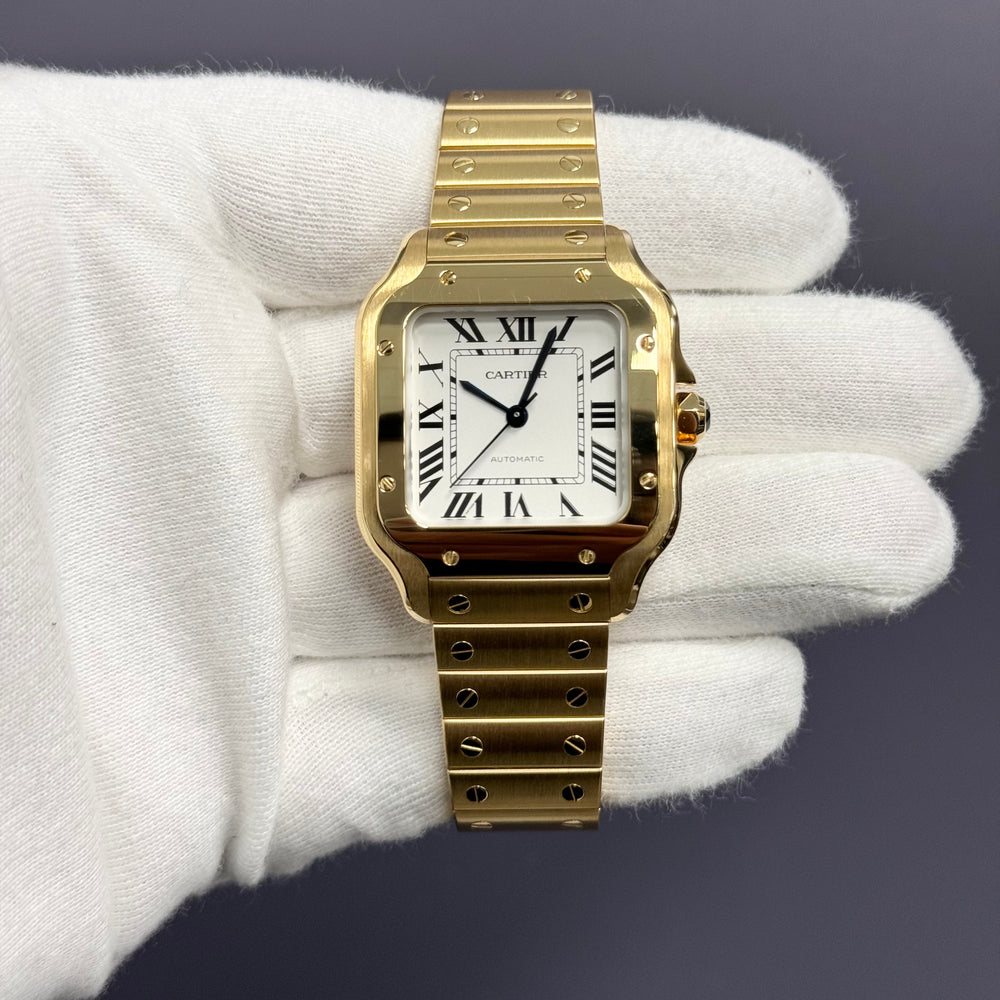 Cartier Santos 35mm Yellow Gold White Dial Watch Ref# WGSA0030