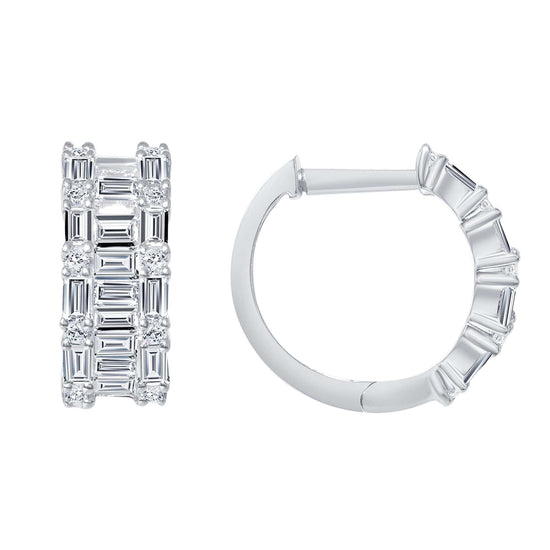 Emerald Lab Diamond Bezel Dangle Huggie Earrings