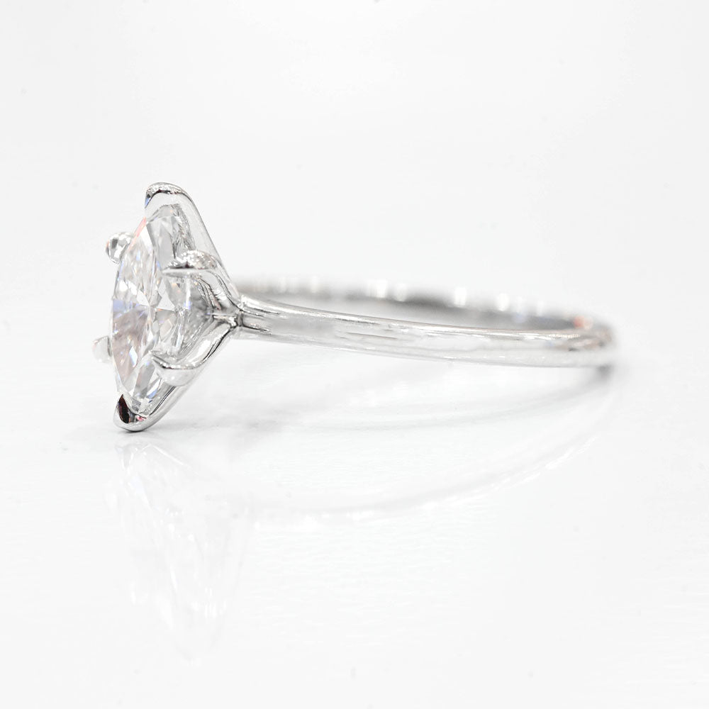 Marquise Lab Diamond Solitaire Engagement Ring with Hidden Halo