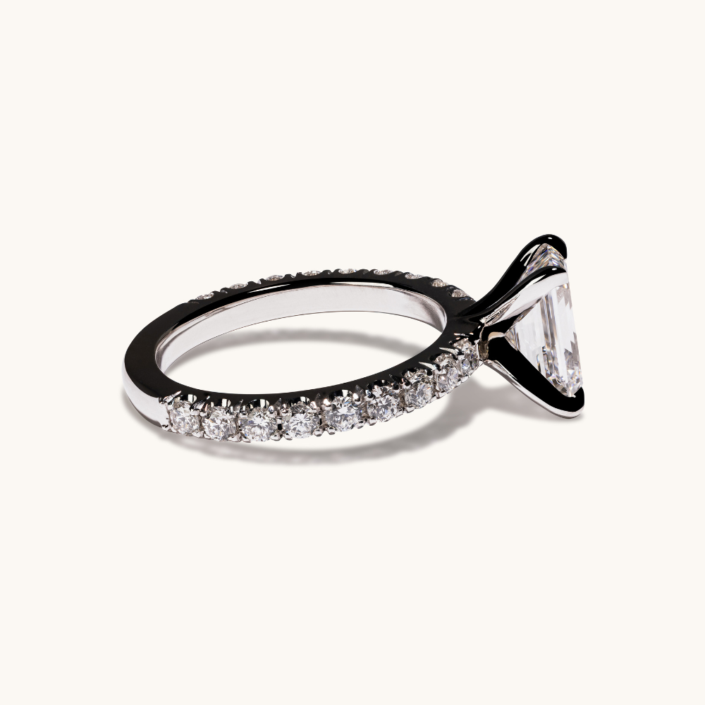 Engagement rings may be upgraded by purchasing a new diamond that is a minimum of double the original purchase price.