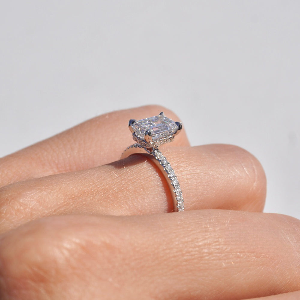 1.71 Emerald Lab Diamond Engagement Ring with Hidden Halo