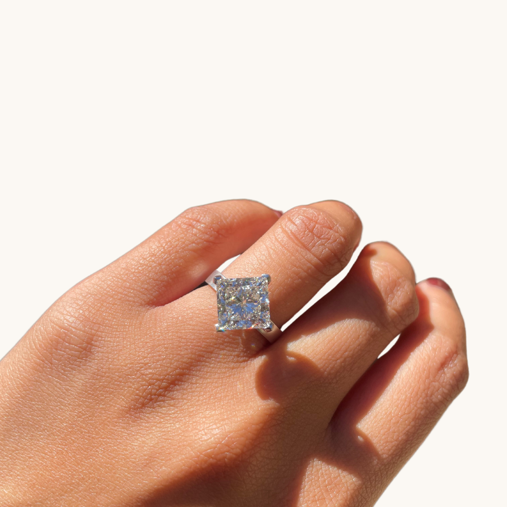 5.05 Princess Lab Diamond Engagement Ring with Satin Solitaire Setting