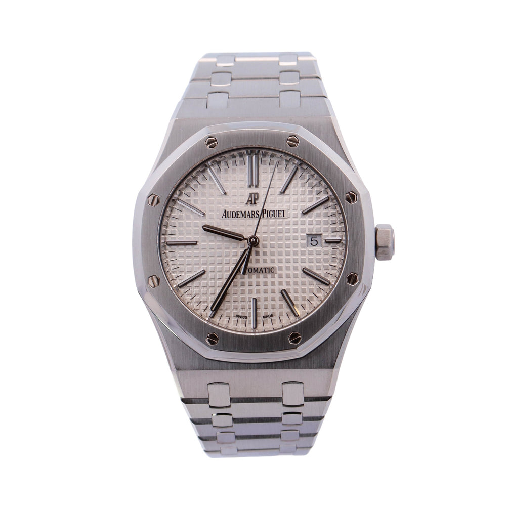 Audemars Piguet Men's Royal Oak Stainless Steel 41mm White "Grand Tappiserie" Stick Dial Watch Reference #: 15400ST.OO.1220ST.02