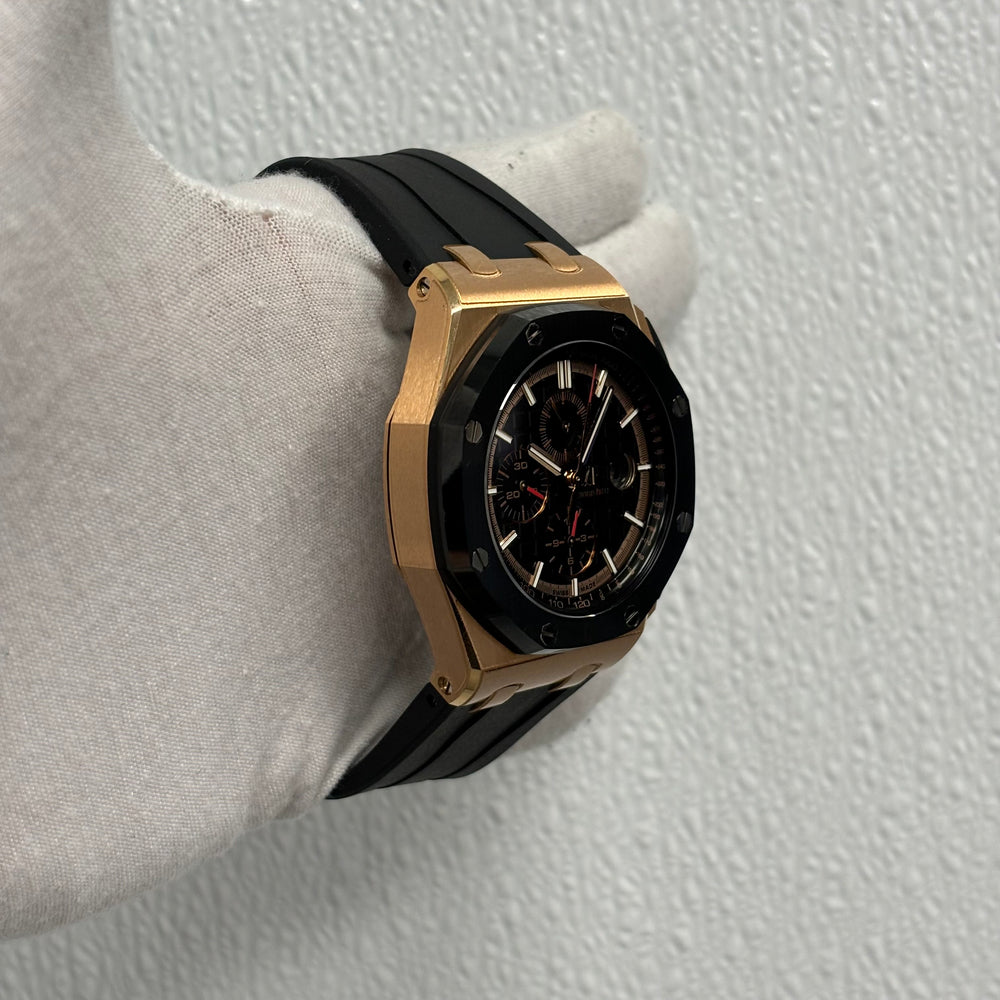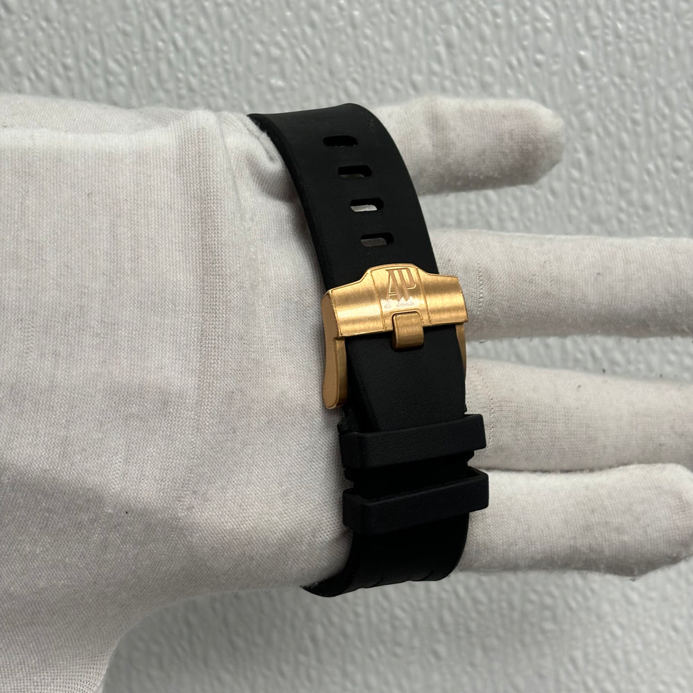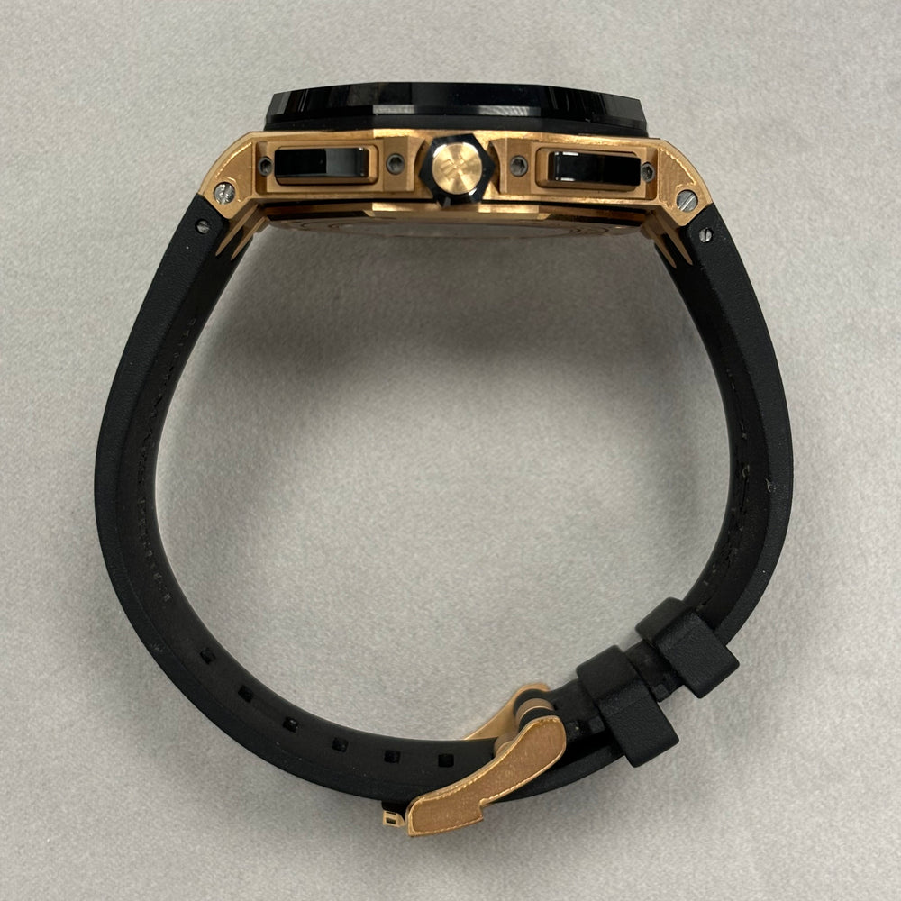 | Bracelet Style and Material | Black Rubber Strap w/ Rose Gold Buckle |