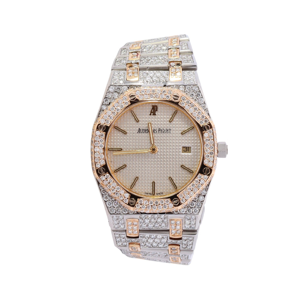 Audemars Piguet Royal Oak Two Tone 33mm Custom Iced Out White Stick Dial Watch Ref# 563036SA