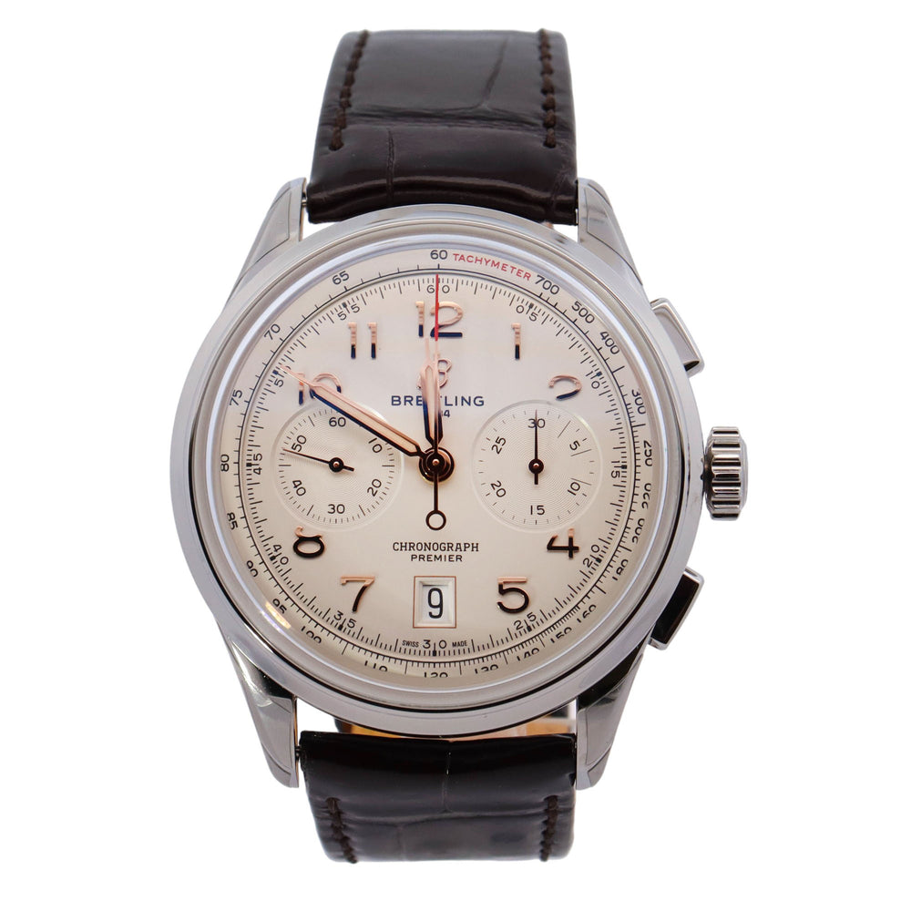 Breitling Premier Stainless Steel 42mm White Chronograph Dial Watch Reference# AB0145
