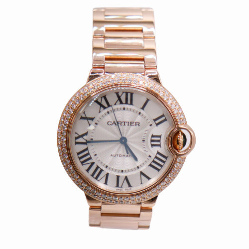 Cartier Men's Ballon Bleu Rose Gold 36mm Silver Roman Dial Watch Ref# WE9005Z3
