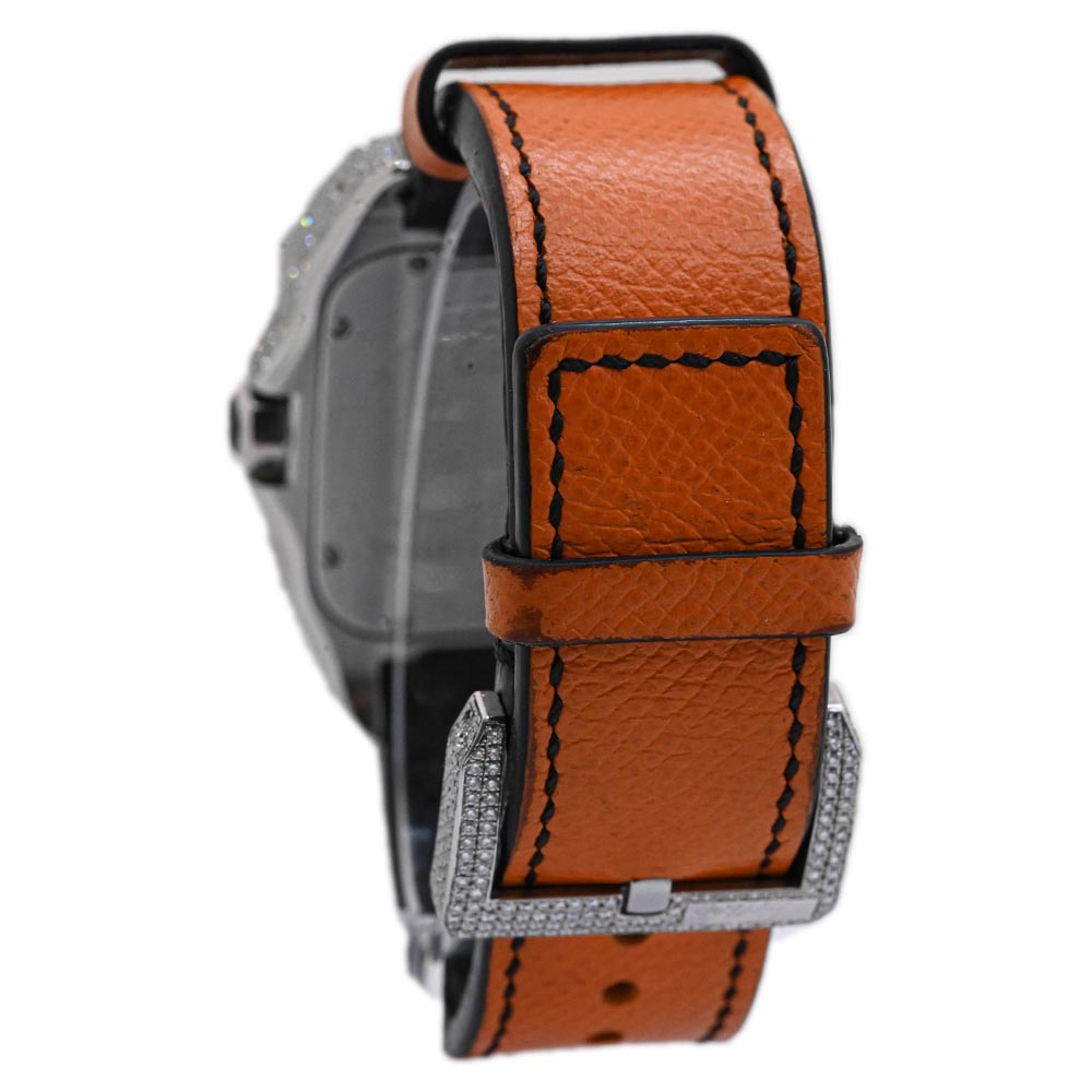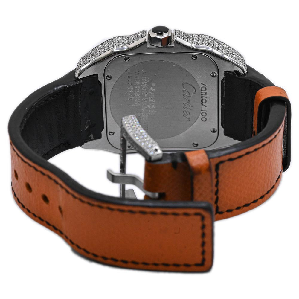 Cartier Men's Santos 100 Stainless Steel 39mm Custom Pave Diamond Dial w/ Green Roman Markers Watch Reference #: W20121U2