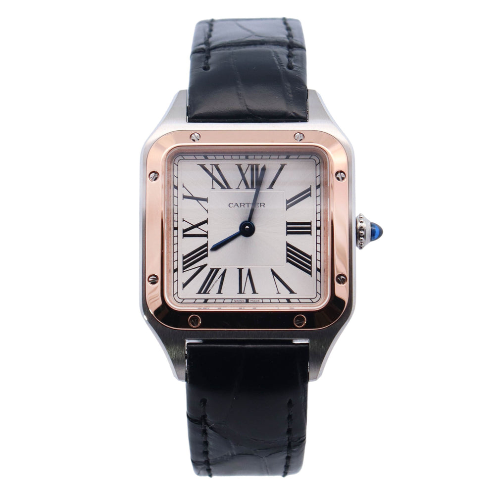 Cartier Santos Dumont Stainless Steel & Rose Gold 28mm X 38mm White Roman Dial Watch Reference# W2SA0012