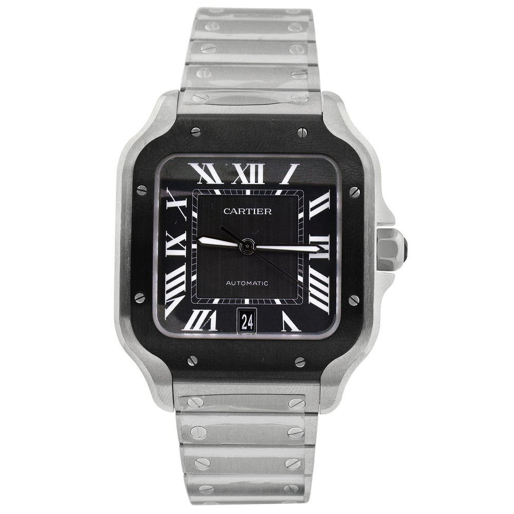 Cartier Santos Stainless Steel 40mm Black Roman Dial Watch Reference# WSSA0037