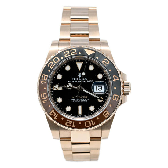 Rolex GMT Master II Rose Gold 40mm Black Dot Dial Watch Reference#: 126715CHNR