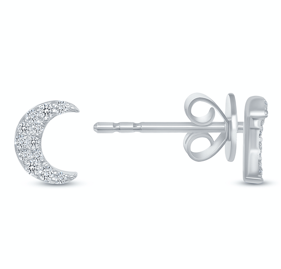 Crescent Moon Diamond Stud Earrings