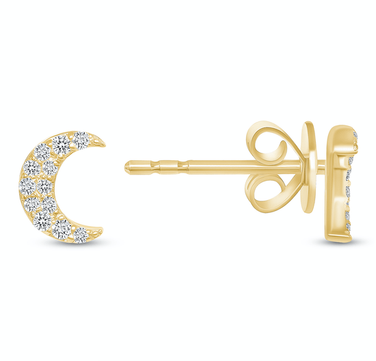 Delicate and radiant, the Crescent Moon Diamond Stud Earrings in 14K gold add a touch of celestial elegance to any ear stack.