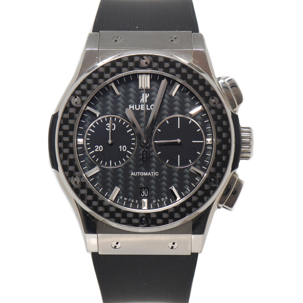 Hublot Mens Classic Fusion Titanium 45mm Black Chronograph Carbon Fiber Dial Watch Reference# 521.nq.1771.rx.plp16