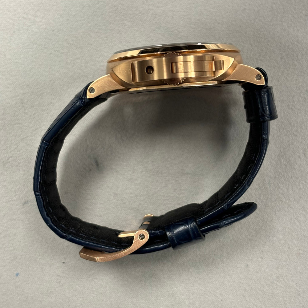 | Bracelet Style and Material | Blue Leather Strap w/ Rose Gold Buckle |