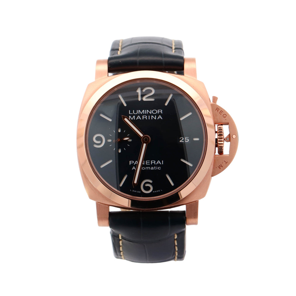 Panerai Luminor Rose Gold 44mm Blue Roman & Stick Dial Watch Reference# PAM01112