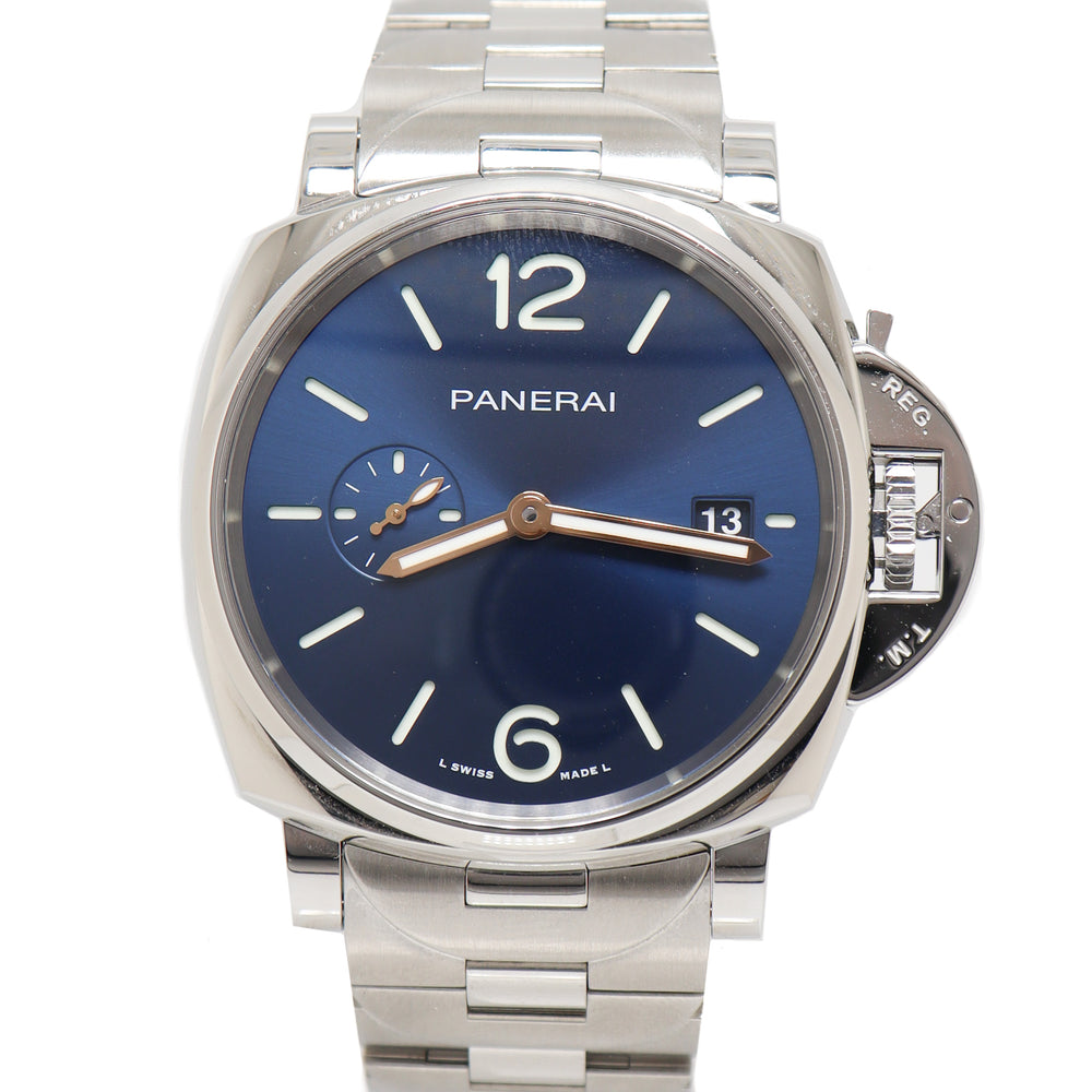 Panerai Men's Luminor Due Stainless Steel 42mm Blue Dial Stick Dial Watch Reference# PAM01124