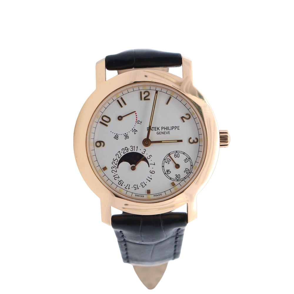 Patek Philippe Complications Yellow Gold 36mm White Arabic Moonphase Dial Watch Reference #: 5055J