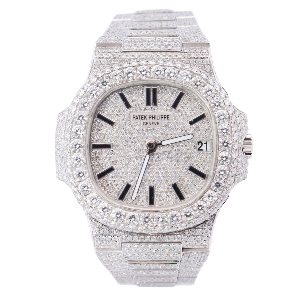 Patek Philippe Nautilus Stainless Steel 40mm Iced Out Pave Stick Dial Watch Reference# 5711