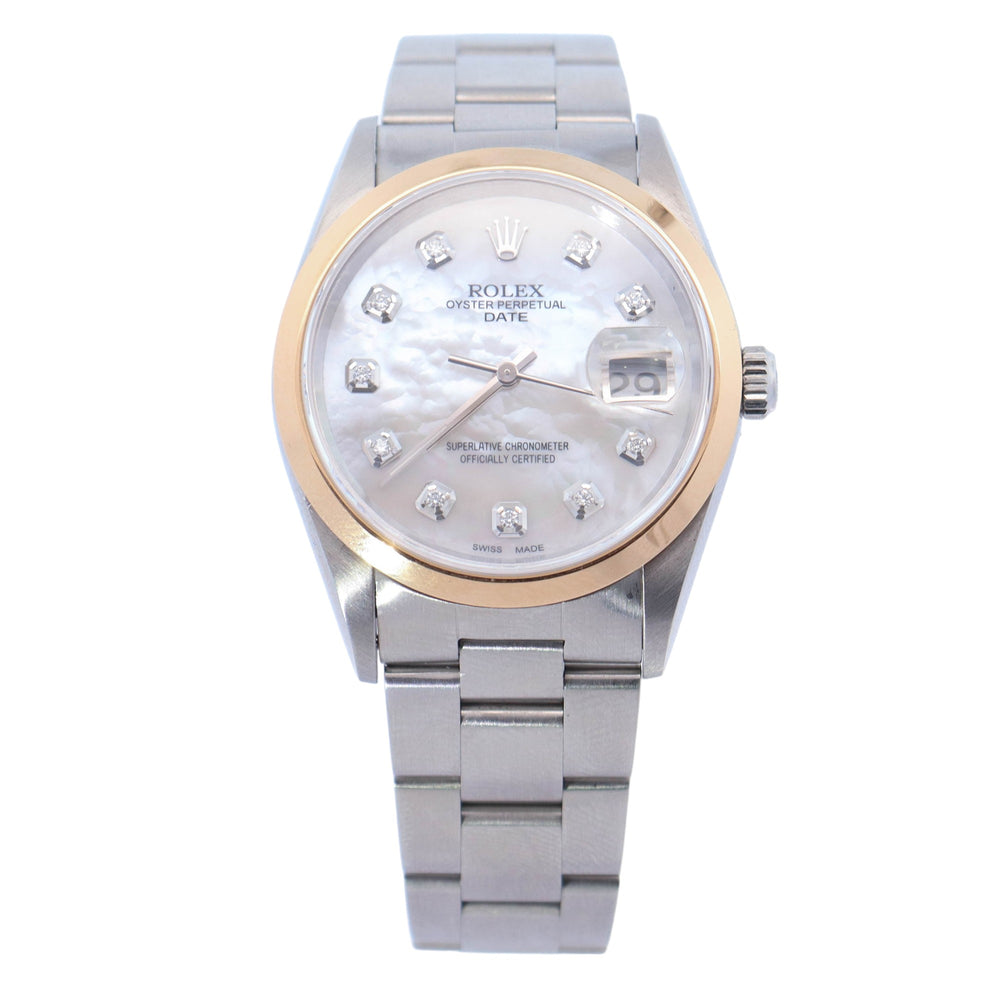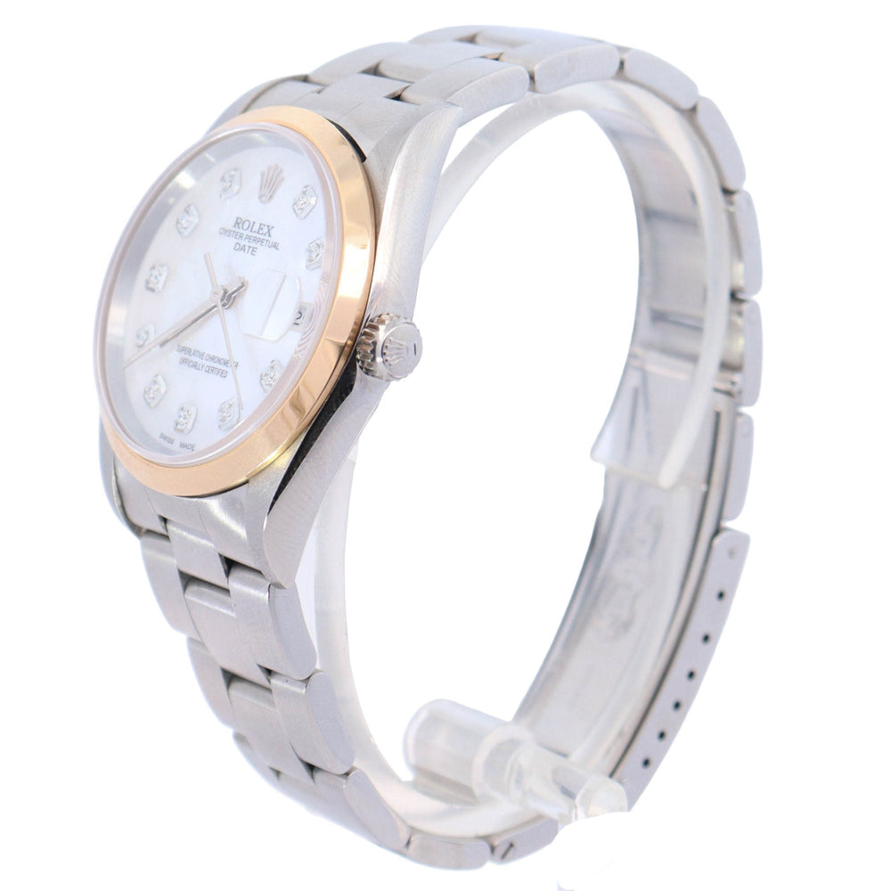 Rolex Date Stainless Steel 34mm Custom White MOP Diamond Dial Watch Reference #: 15200