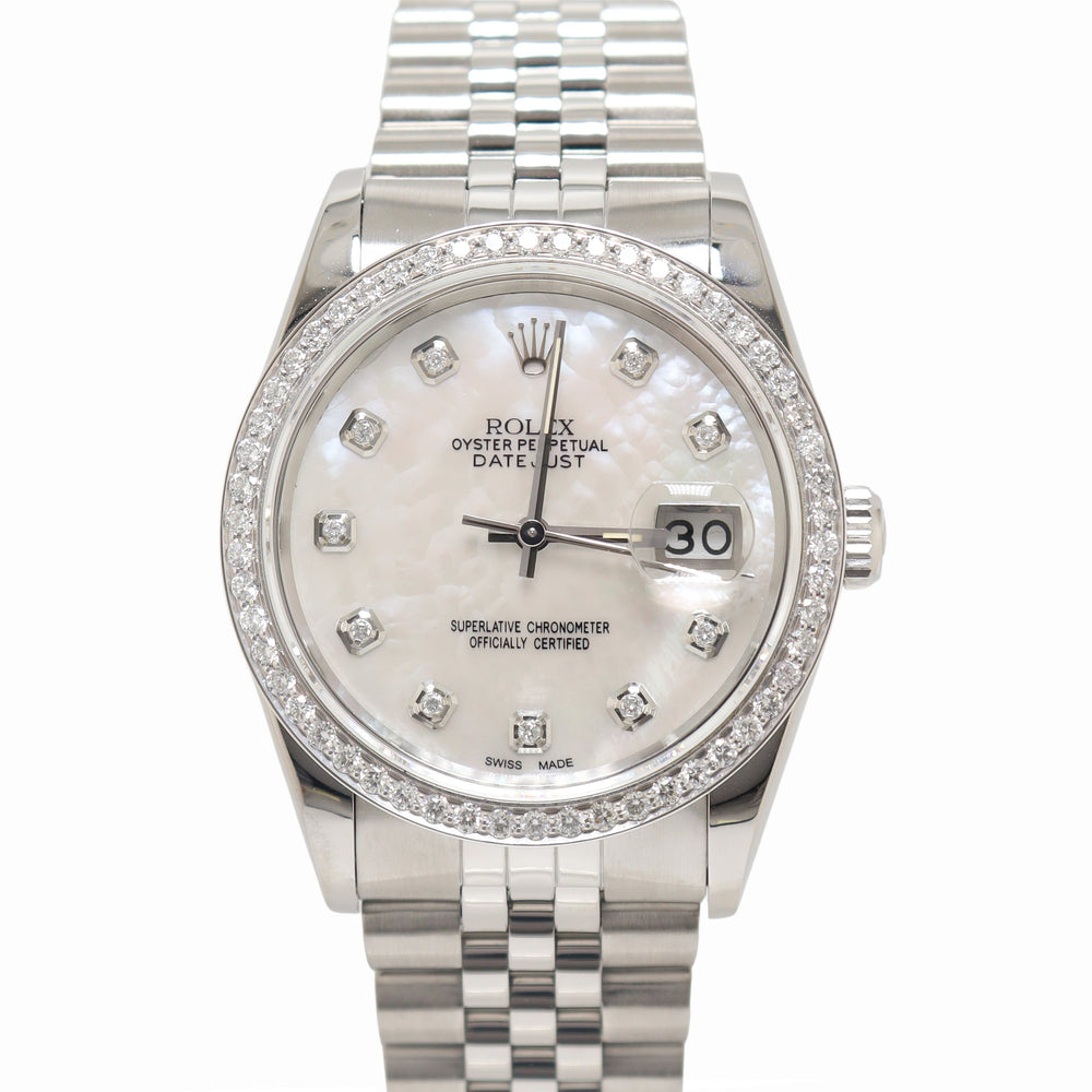 Rolex Datejust 36 Stainless Steel Custom White MOP Diamond Dial Watch Reference# 16234