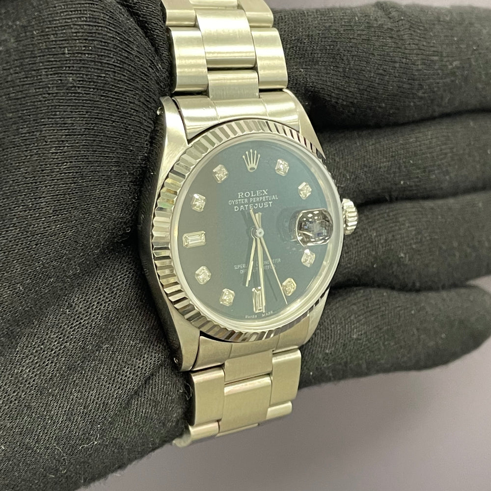 | Dial | Black Dial with Aftermarket Diamond Dot & Emerald Shape Hour Markers |