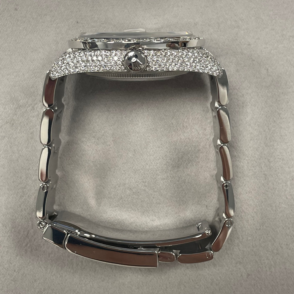 | Bracelet Style and Material | Stainless Steel Oyster w/ Aftermarket Diamond Set Links |