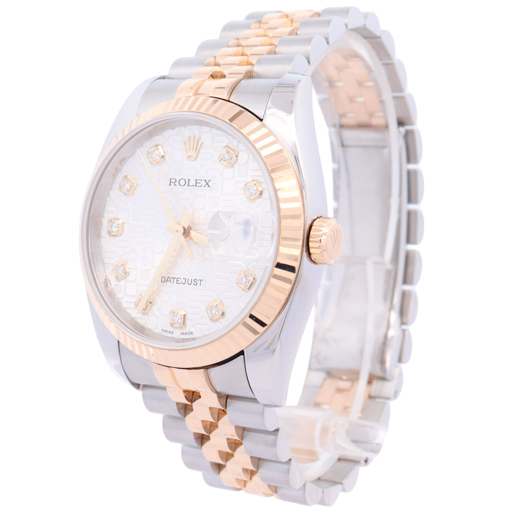Rolex Datejust 36mm Yellow Gold & Steel White Jubilee Diamond Dial Watch Reference# 116233