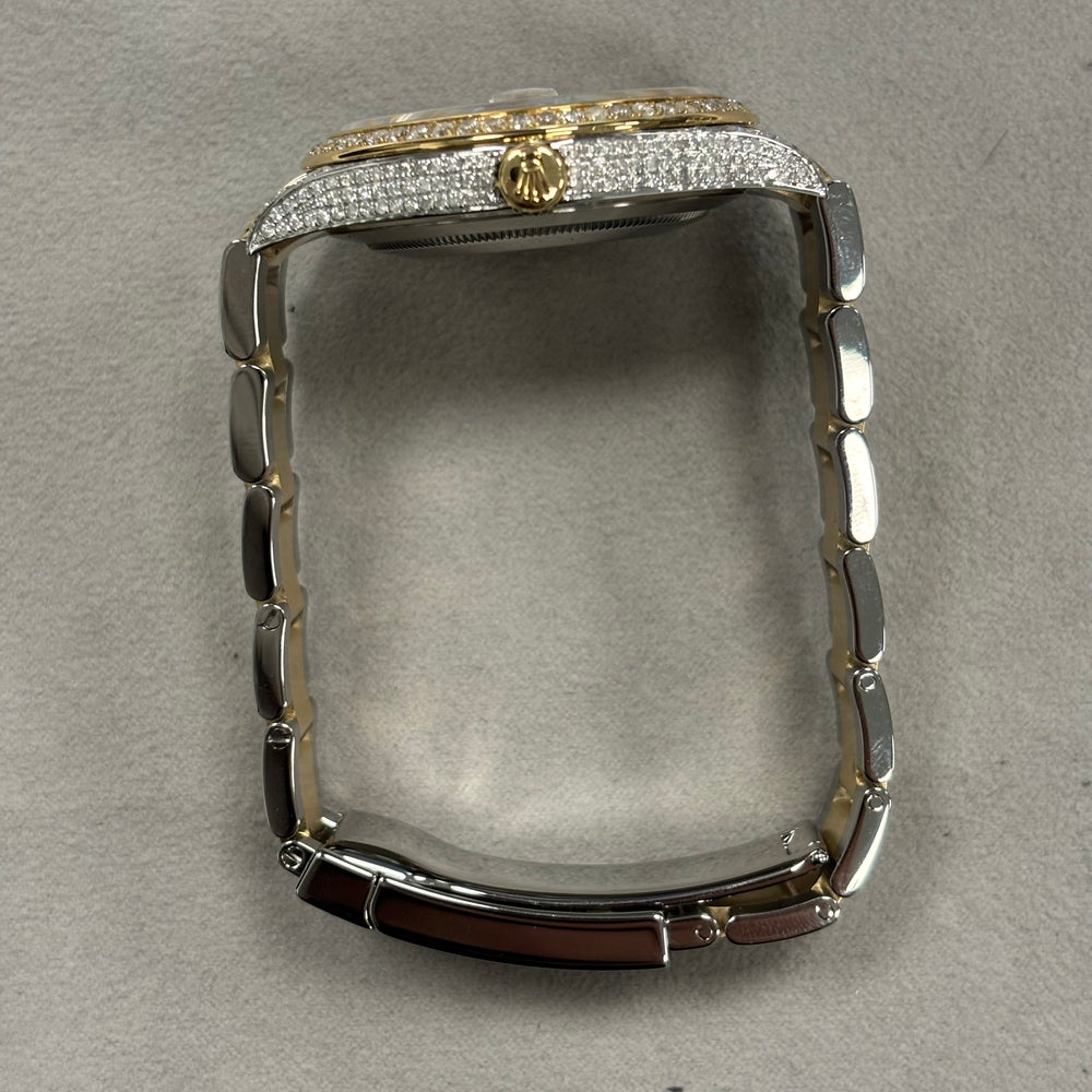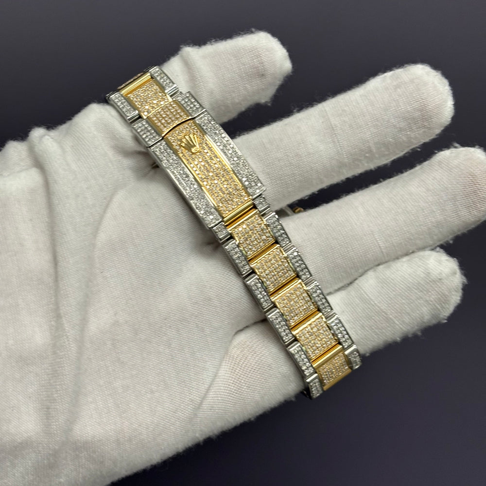 | Bracelet Style and Material | Two-Tone Stainless Steel & Yellow Gold Oyster Iced Out |