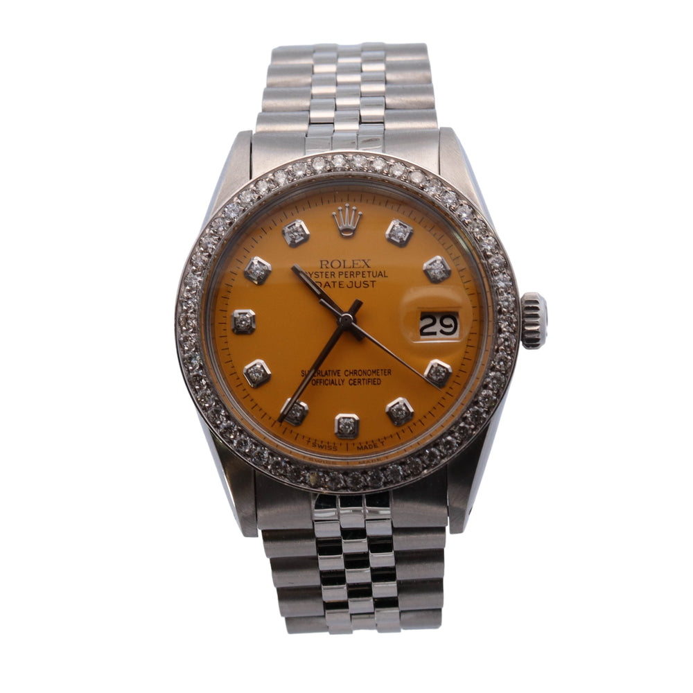 Rolex Datejust Stainless Steel 36mm Custom Yellow Diamond Dial Watch Reference #: 1603