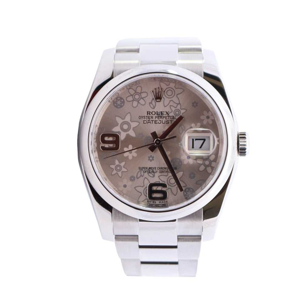 Rolex Datejust Stainless Steel 36mm Silver Floral Dial Watch Reference #: 116200