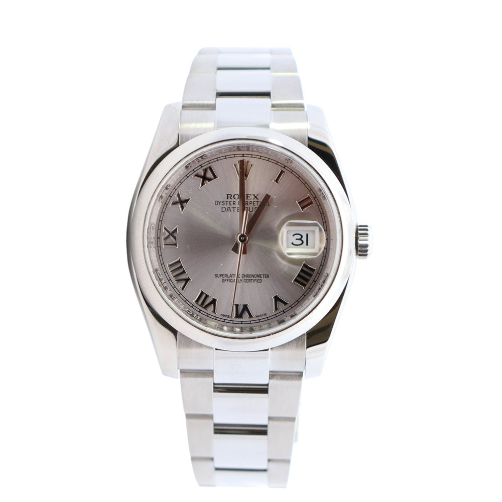 Rolex Datejust Stainless Steel 36mm Silver Roman Dial Watch Reference #: 116200