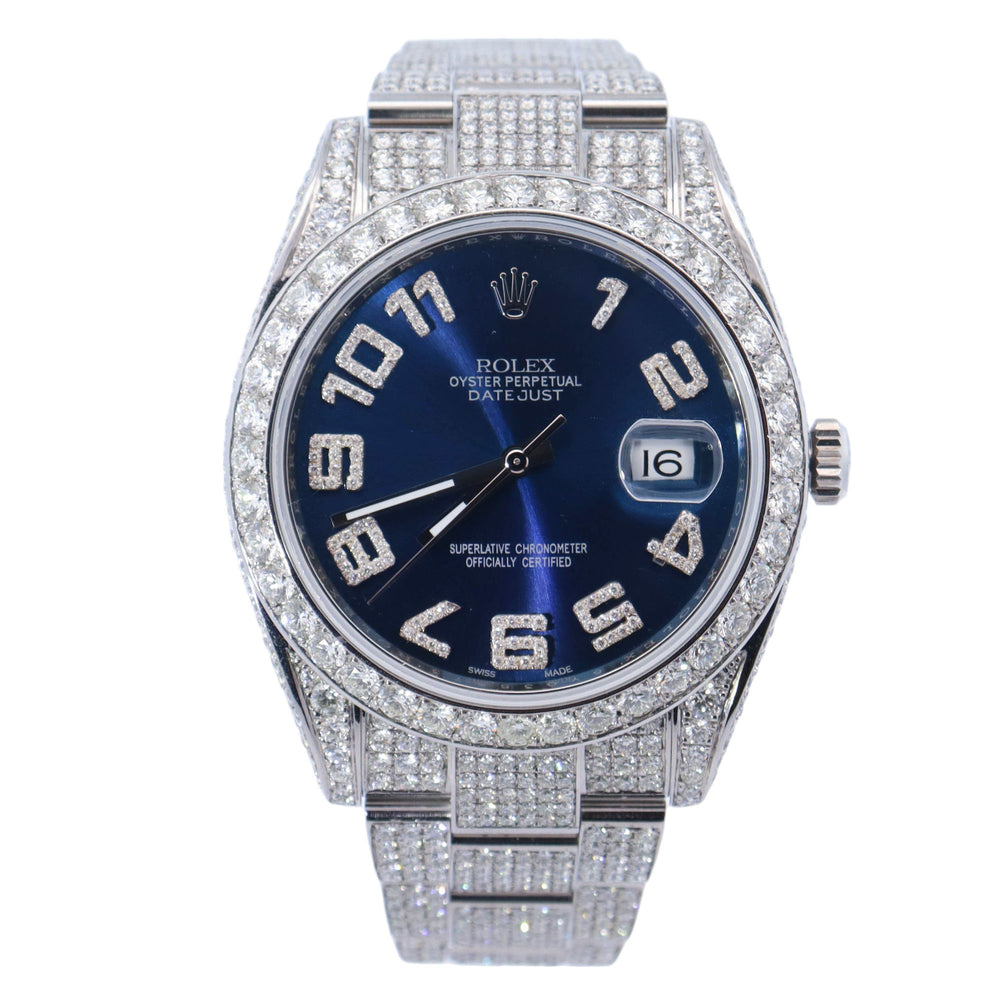 Rolex Datejust Stainless Steel 41mm Custom Iced Out Blue Diamond Arabic Dial Watch Reference# 126300