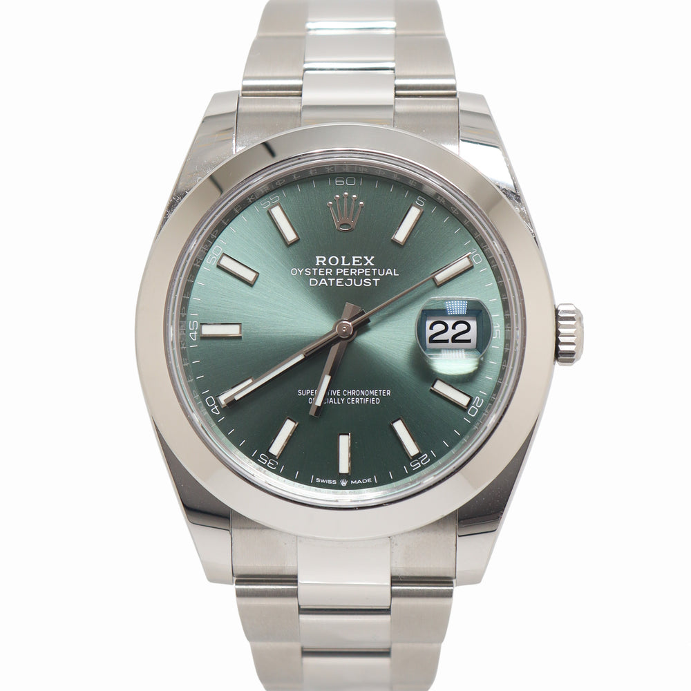 Rolex Datejust Stainless Steel 41mm Green Stick Dial Watch Reference# 126300