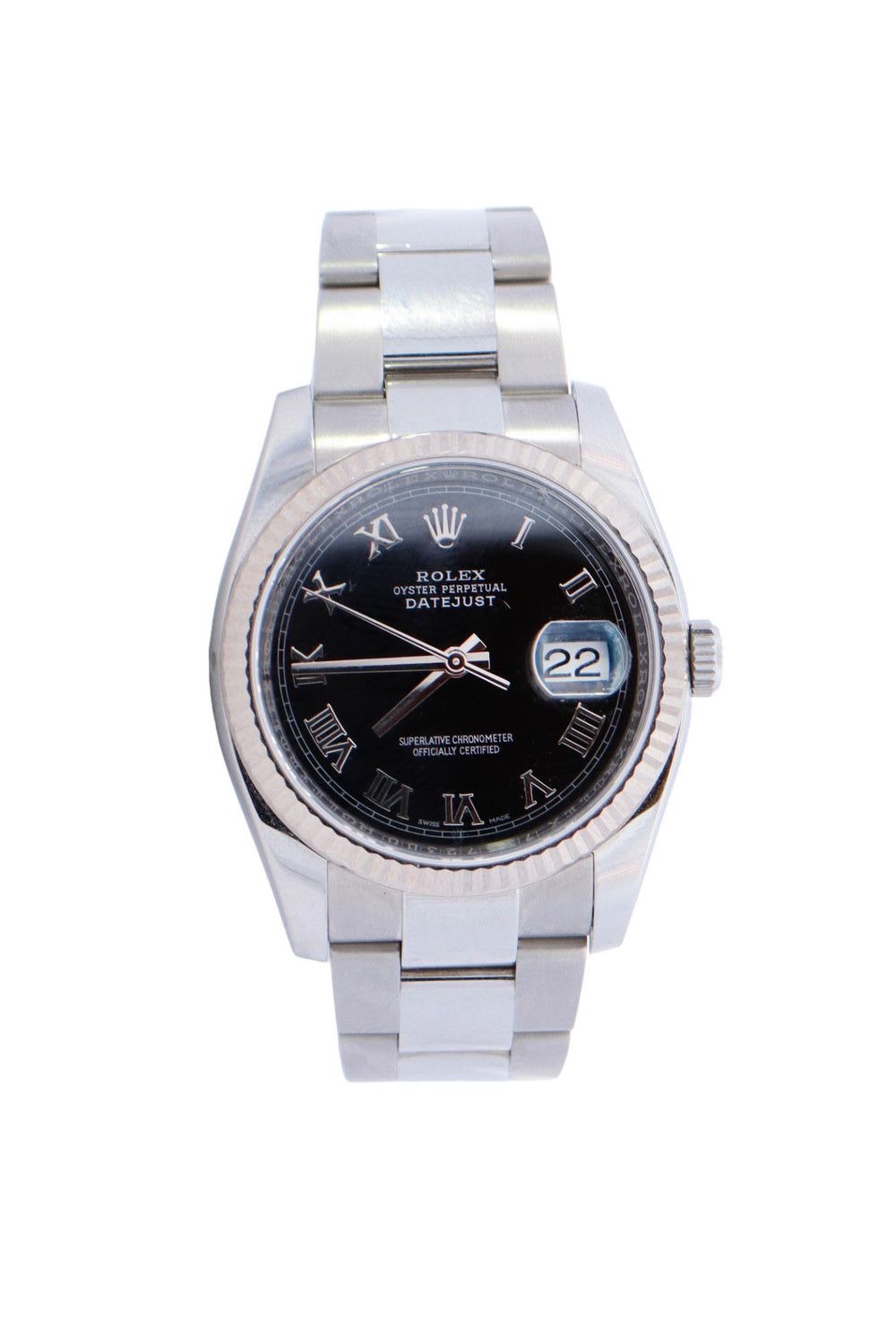 Rolex Datejust Stainless Steel Black Roman Dial Watch Reference# 116234