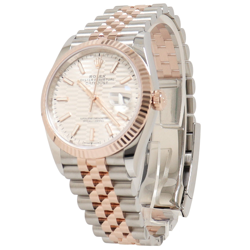 Rolex Datejust Two Tone Everose Gold and Stainless Steel 36mm Silver Fluted Motif Stick Dial Watch Reference# 126231
