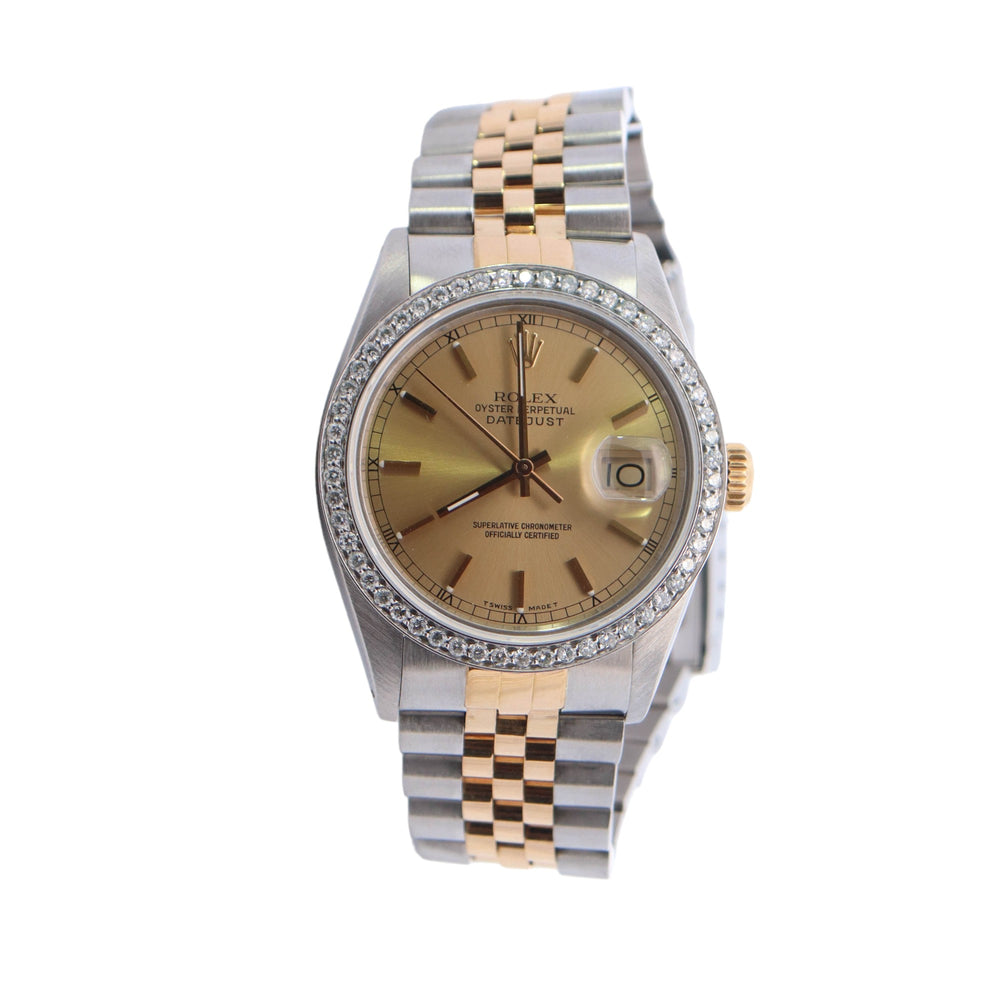 Rolex Datejust Two Tone Steel & Yellow Gold Champagne Stick Dial Watch Reference #: 16013