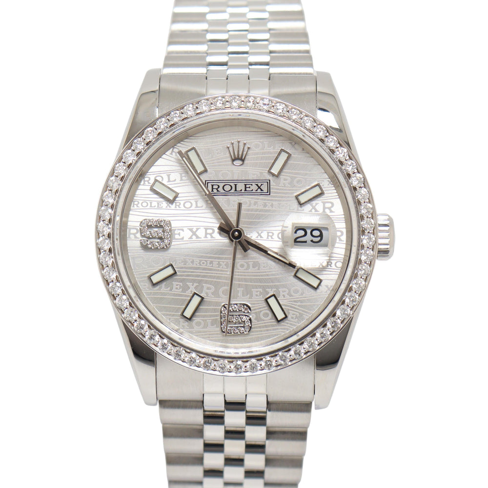 Rolex Datejust Two Tone White Gold & Stainless Steel 36mm Silver Stick & Diamond #6 & #9 Dial Watch Reference#: 16234