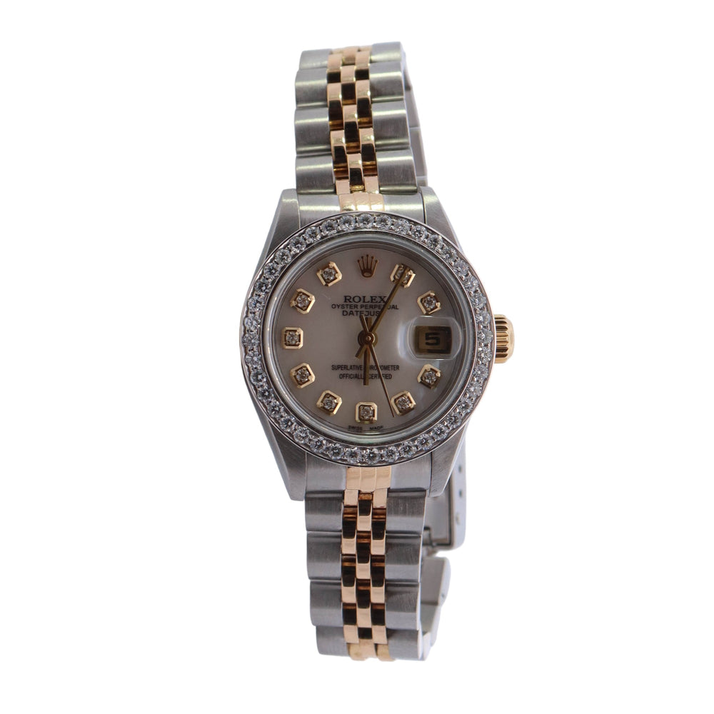 Rolex Datejust Two Tone Yellow Gold & Steel 26mm White MOP Diamond Dial Watch Reference #: 79173