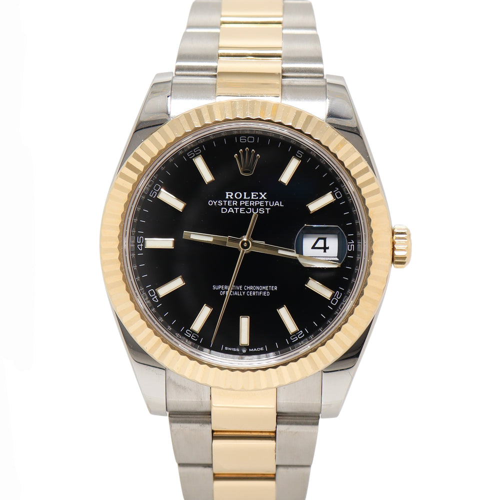 Rolex Datejust Two Tone Yellow Gold & Steel 41mm Black Stick Dial Watch Reference #: 126333