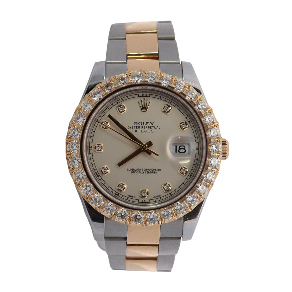 Rolex Datejust Two Tone Yellow Gold & Steel 41mm Ivory Diamond Dial Watch Reference#: 116333