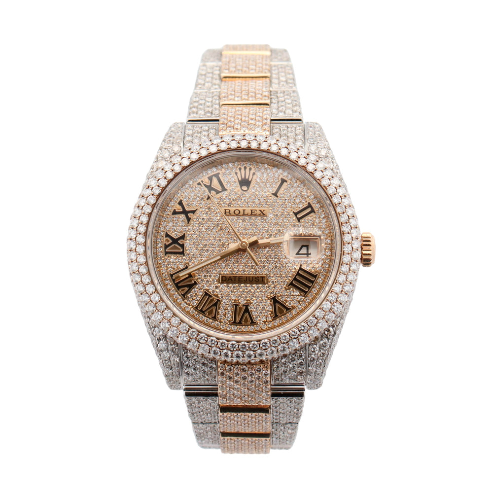 Rolex Datejust Two Tone Yellow Gold & Steel Completely Iced Out 41mm Pave Roman Dial Watch Reference #: 126333