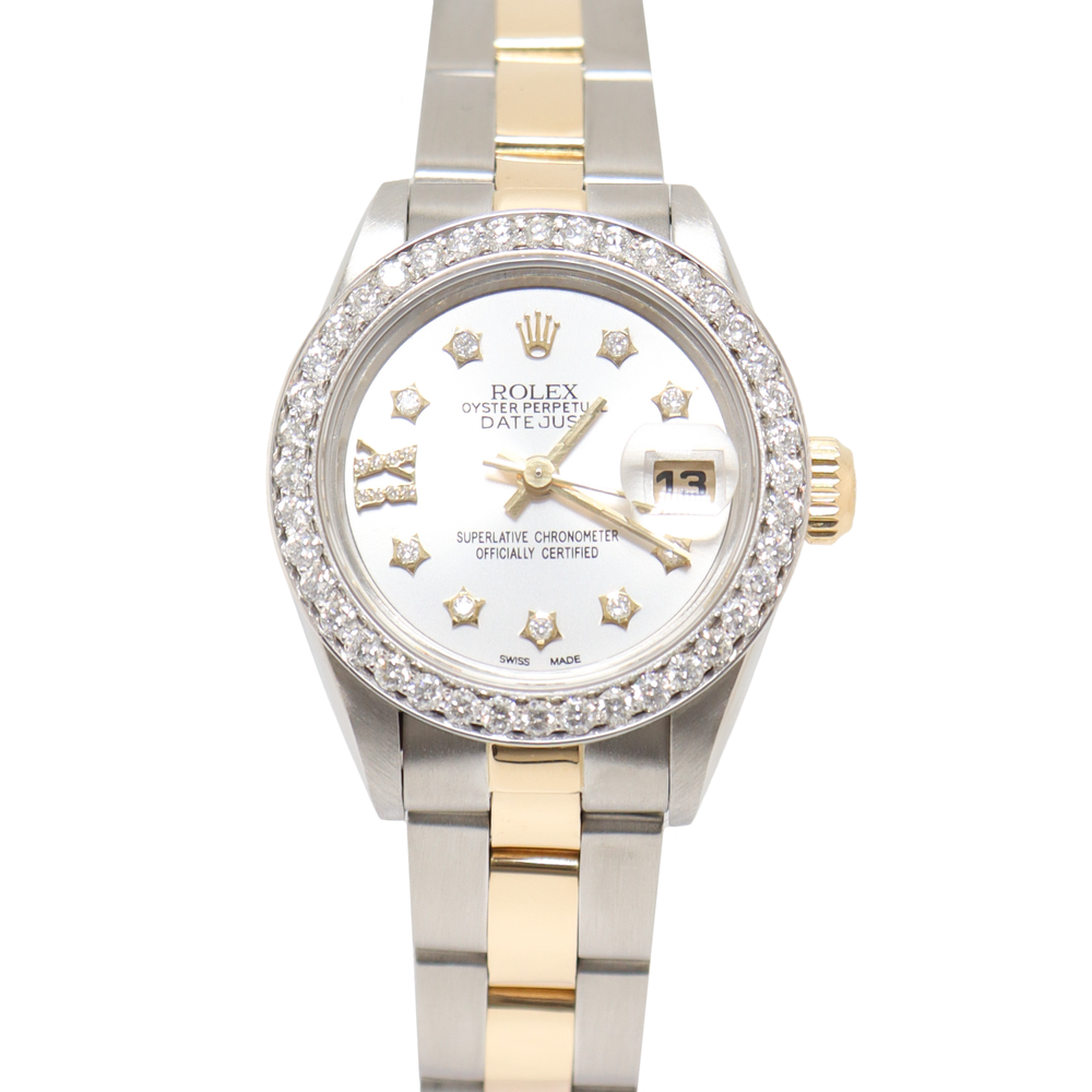 Rolex Datejust Yellow Gold & Steel 26m Silver Diamond Dial Watch Reference#: 69173