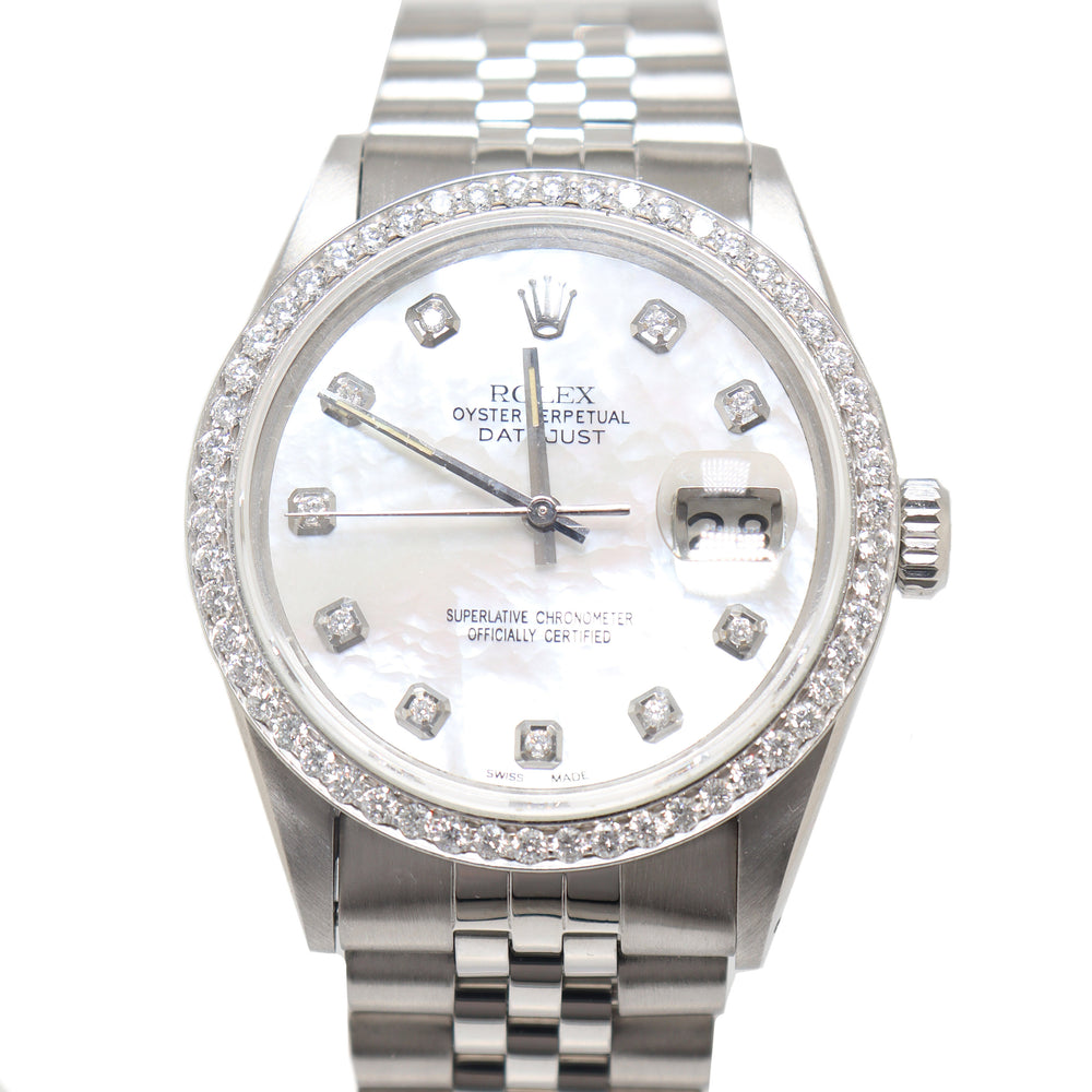 Rolex Day Date Stainless Steel 36mm Custom White MOP Diamond Dial Watch Reference# 16030