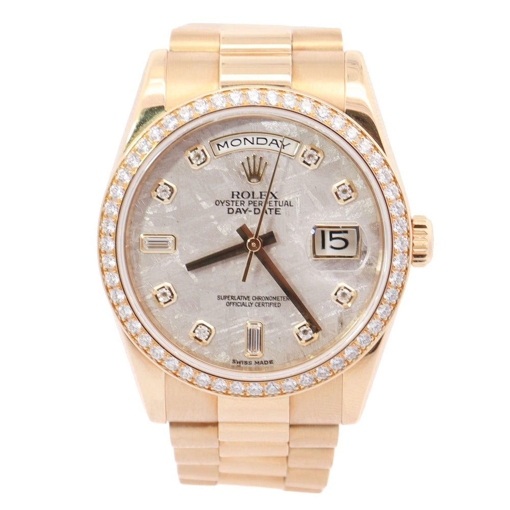Rolex Day-Date Yellow Gold 36mm Meteorite Diamond Dial Watch Reference# 118348
