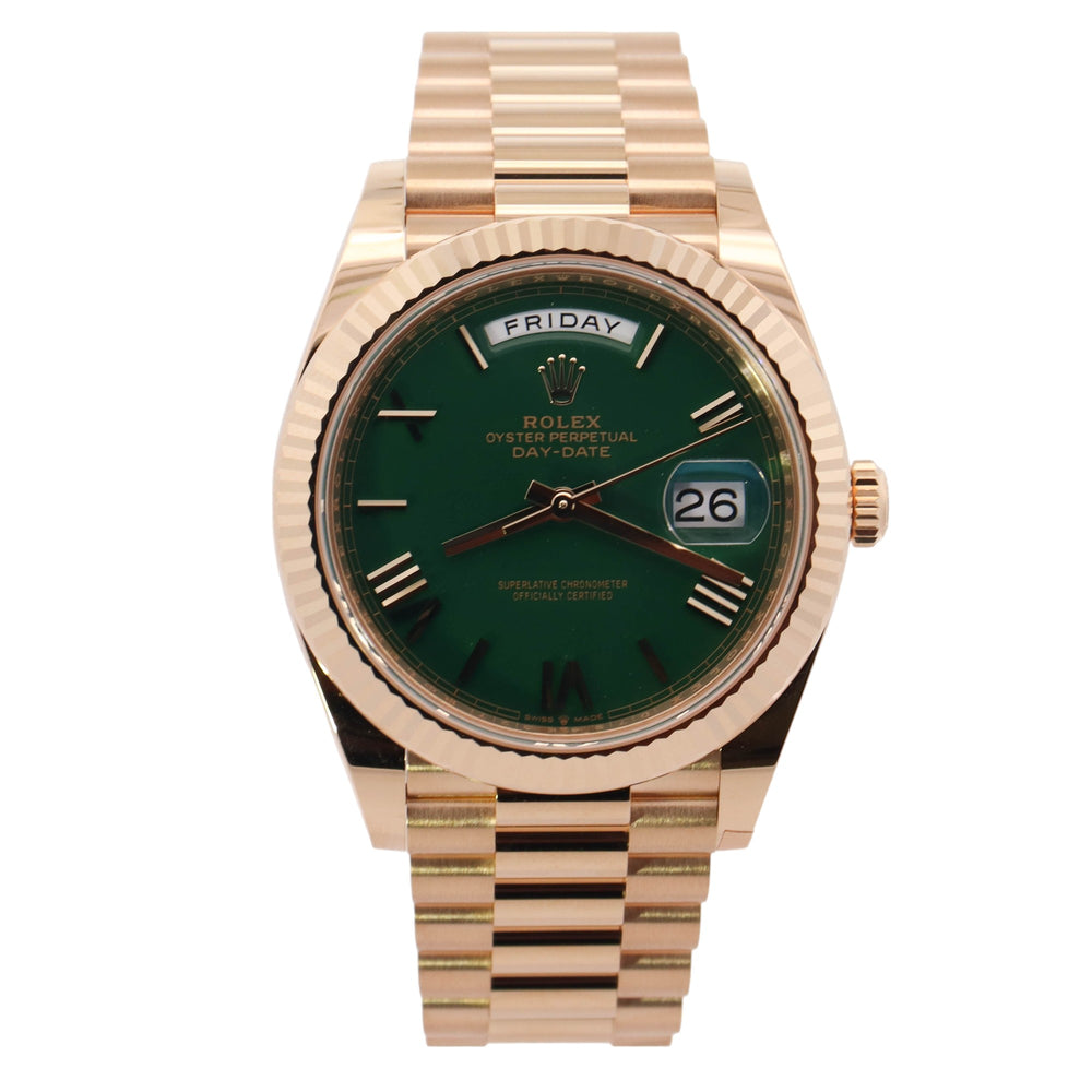 Rolex Day Date Yellow Gold 40mm Green Roman Dial Watch Reference# 228238
