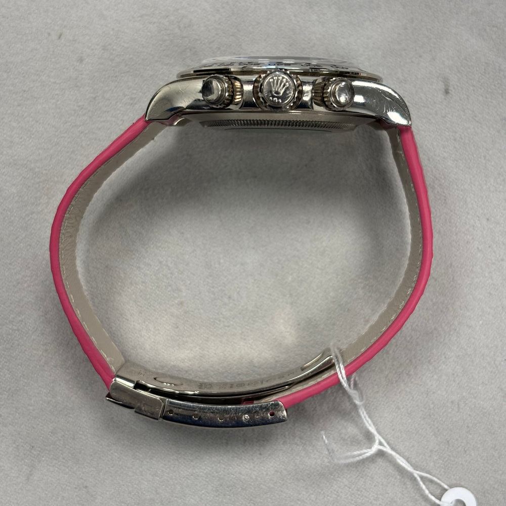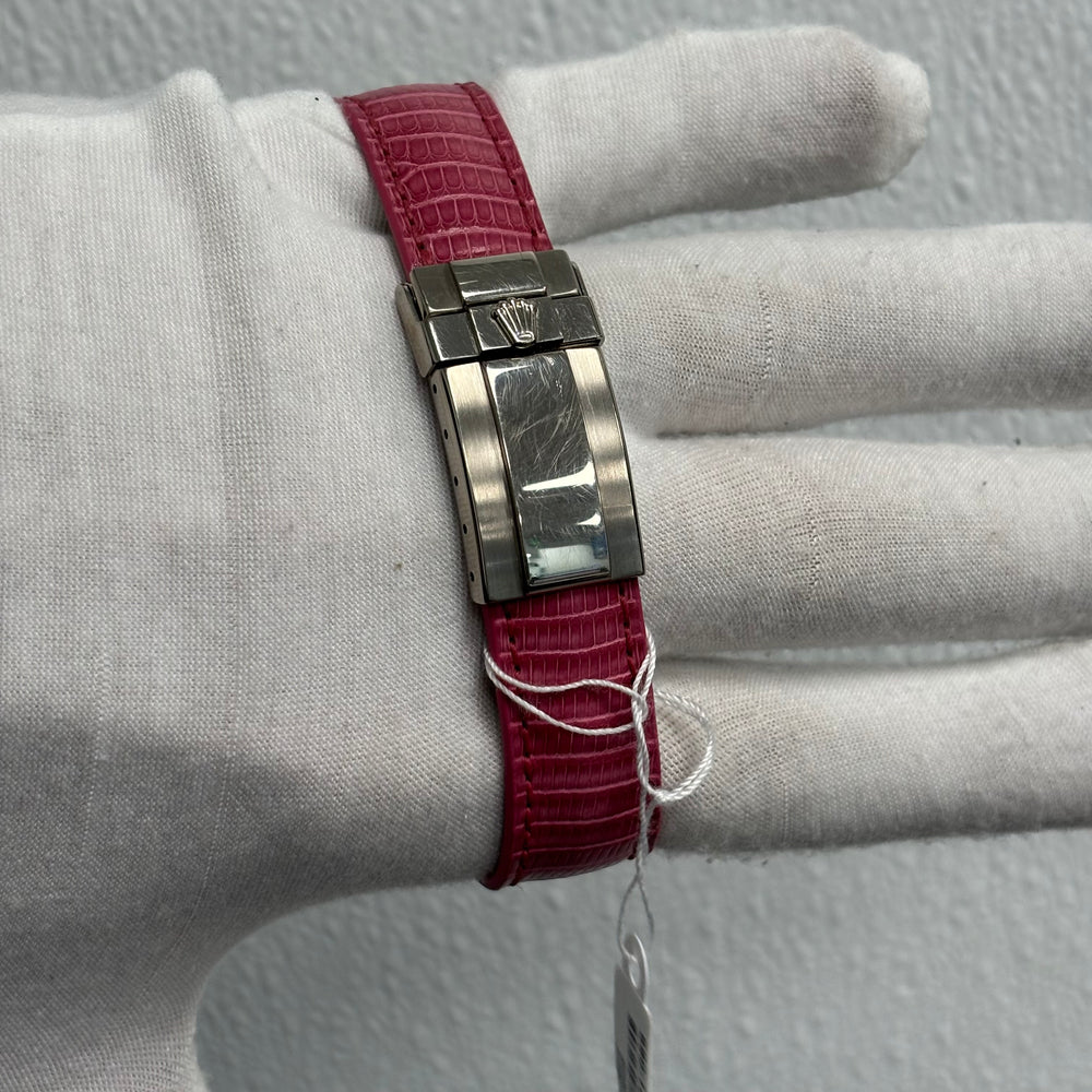 | Bracelet Style and Material | Pink Lizard Strap w/ White Gold Clasp |