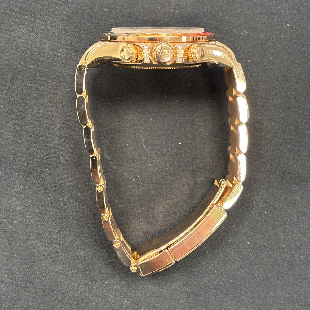 | Case Size and Material | 40mm / Rose Gold w/ Aftermarket Diamond Set Lugs |