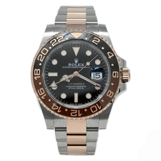 Rolex GMT Master II Two Tone Rose Gold & Steel 40mm Black Dot Dial Watch Reference#: 126711CHNR