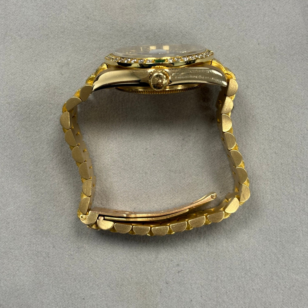 | Bracelet Style and Material | Yellow Gold Presidential w/ Aftermarket Diamond Center Links |